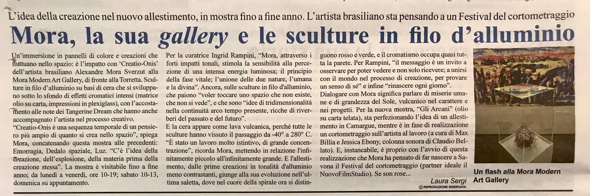 Esposizione del Progetto Luz presso Mora Modern Art Gallery, Savona